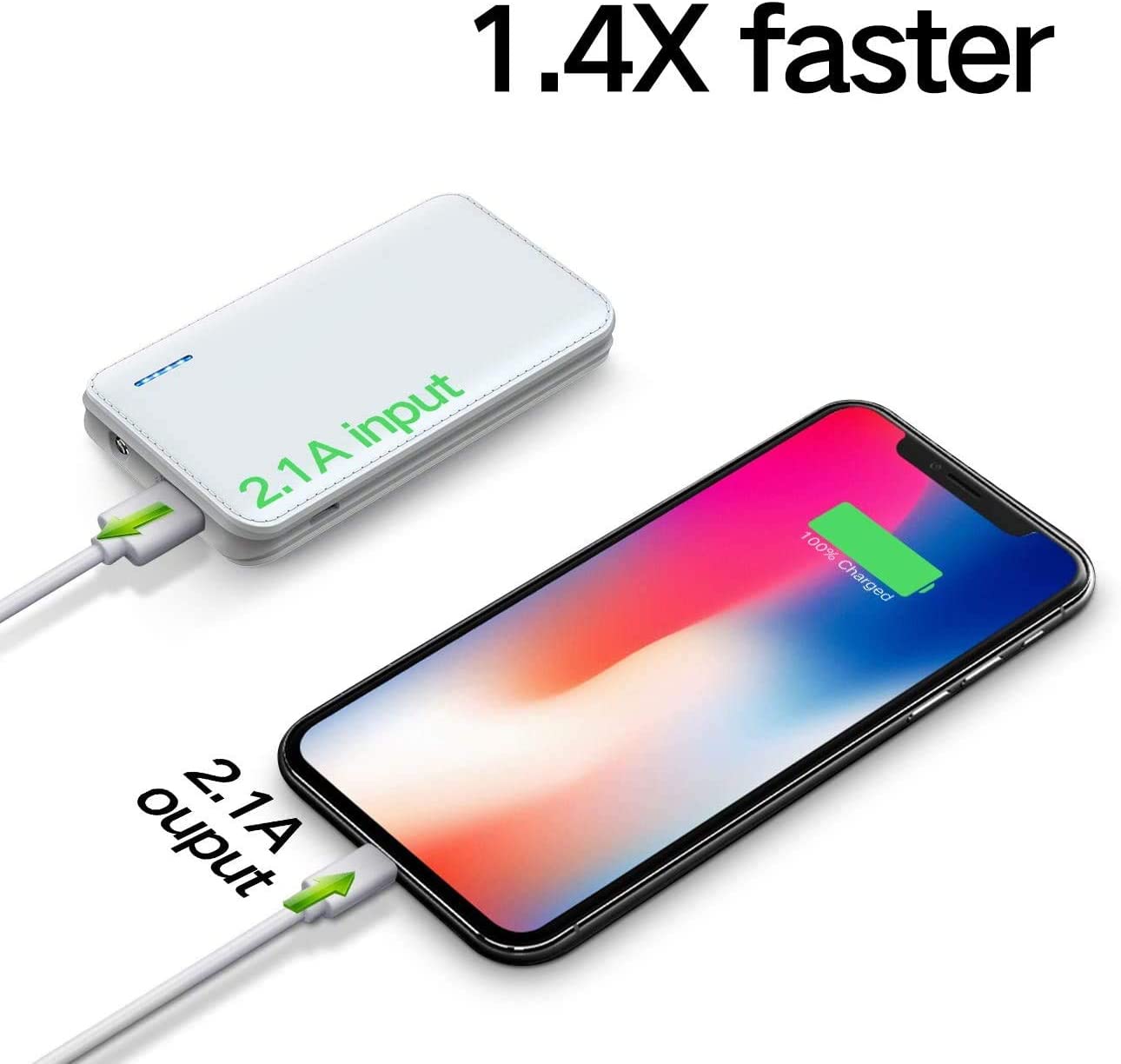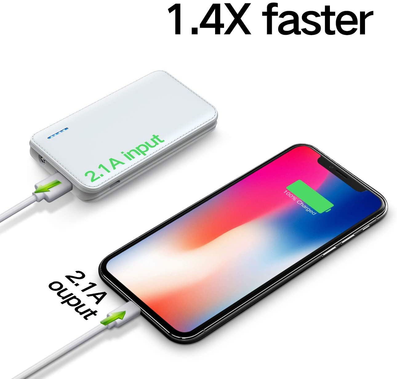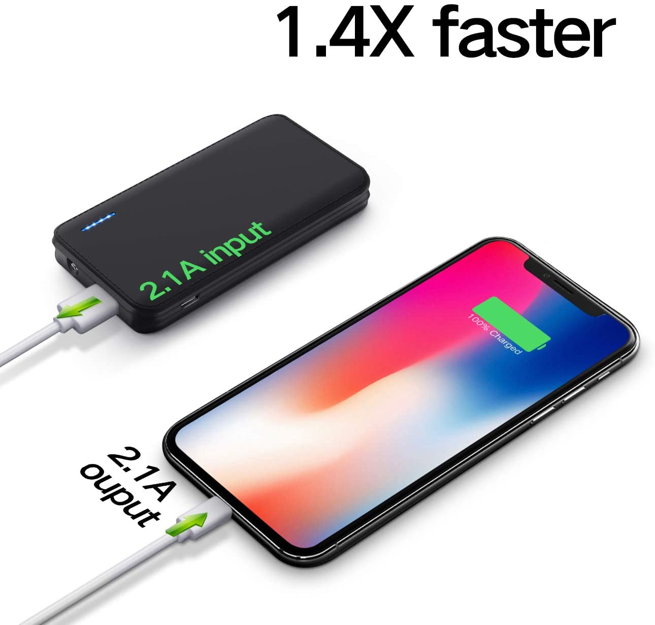 • 【Fast Charging & Fast Recharging】: 5V 2.1A fast charge & 5V 2.1A fast recharge, help you save 1.4X time charging your phone, full power charges your iPhone device, iPad and Android device